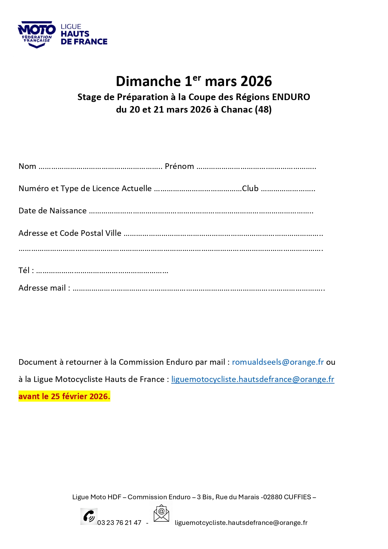 – Avoir une licence FFM Compétition de la ligue HDF Moto 2026.